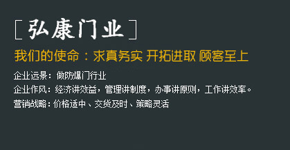 • 河北弘康門(mén)業(yè)有限公司     河北弘康門(mén)業(yè)有限公司是一家生產(chǎn)防爆門(mén)窗、泄爆門(mén)窗、密閉門(mén)窗、防火門(mén)窗、監(jiān)獄門(mén)、隔音門(mén)、變壓器門(mén),隧道抗風(fēng)壓防火門(mén),隧道防護(hù)門(mén),3小時(shí)防火門(mén)窗,防火玻璃門(mén),雙向開(kāi)啟防火門(mén)等特種門(mén)窗的生產(chǎn)廠家。河北弘康門(mén)業(yè)有限公司一直致力于防爆技術(shù)、新產(chǎn)品的研究開(kāi)發(fā)工作。
